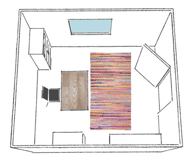 L’idéal étant d’être face à la porte ou à la fenêtre… pour voir venir le « danger » et pouvoir rêvasser en regardant dehors (oui, oui, c’est bon aussi de regarder les petits oiseaux…) et enfin, avoir la fenêtre en face de soi ou sur le côté vous évitera les reflets dans votre écran ! Voici un rapide croquis pour vous présenter la configuration idéale !